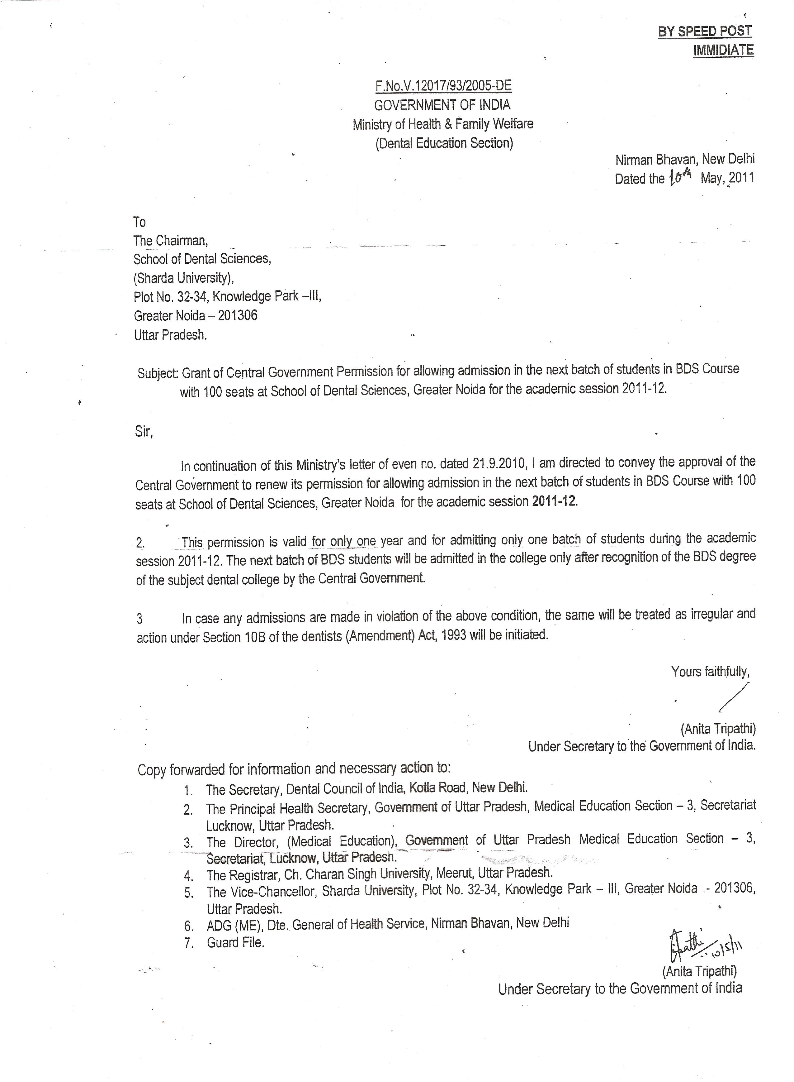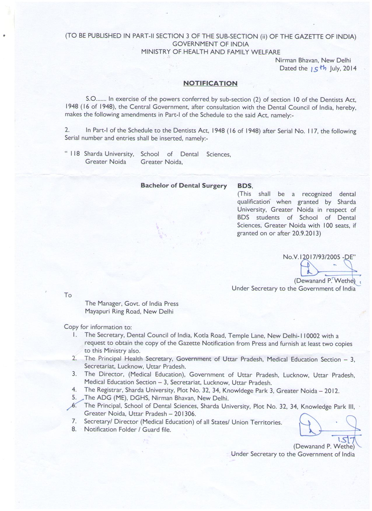 Sharda University is a privately funded State University established through an act of State Legislature of Uttar Pradesh (14 of 2009) Government of Uttar Pradesh has issued us a no objection certificate to run the University.