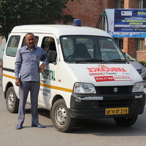 Sharda University houses a fleet of various emergency vans and ambulances for urgent situations. Each ambulance is fully equipped with appropriate medical equipment, medication, and stretchers to carry the ill or injured. Experienced medical practitioners work in teams per ambulance and provide quality care based on their training. The emergency vehicles at the university are intended for the benefit of the students and staff.